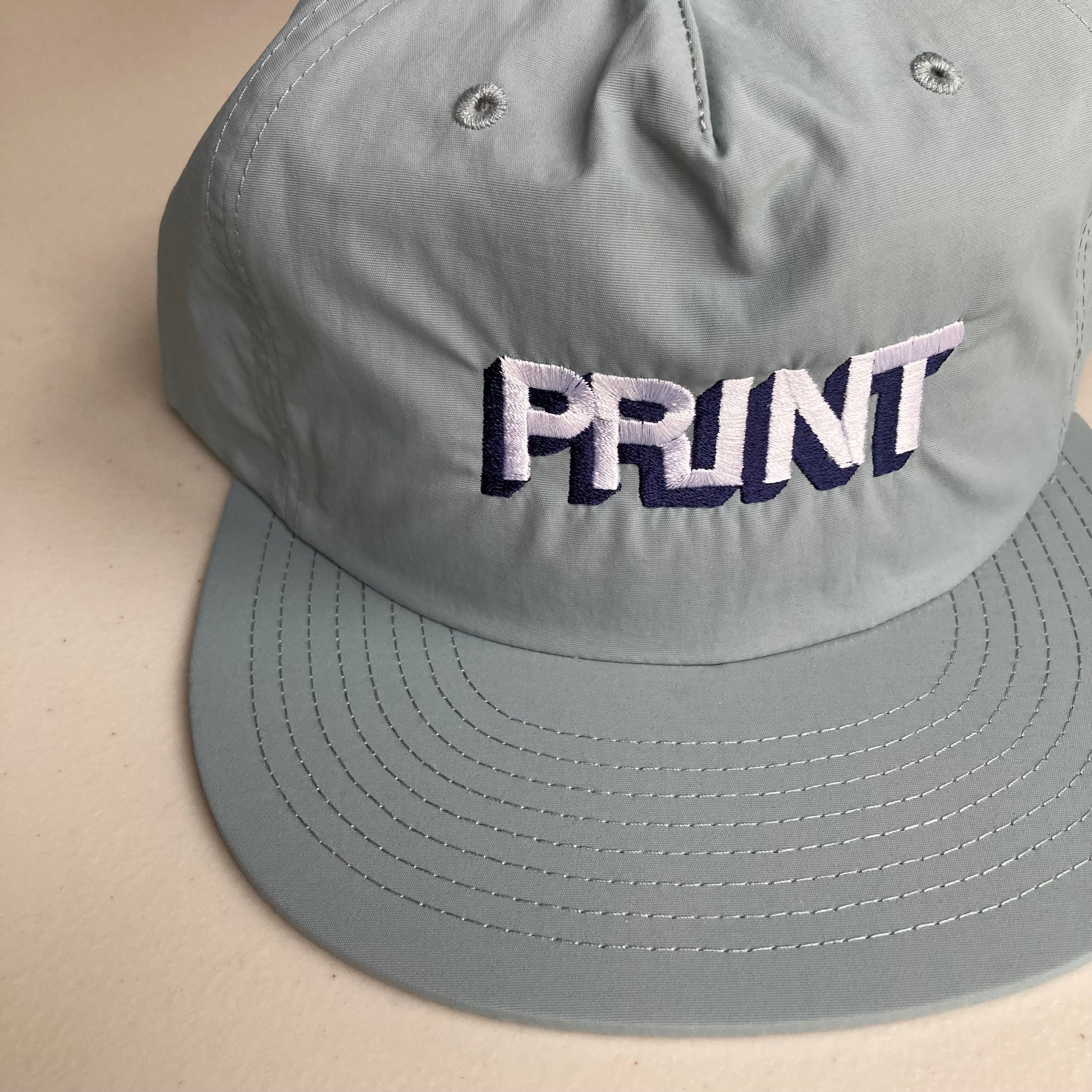 PRINTの刺繍のかぶらないキャップです。