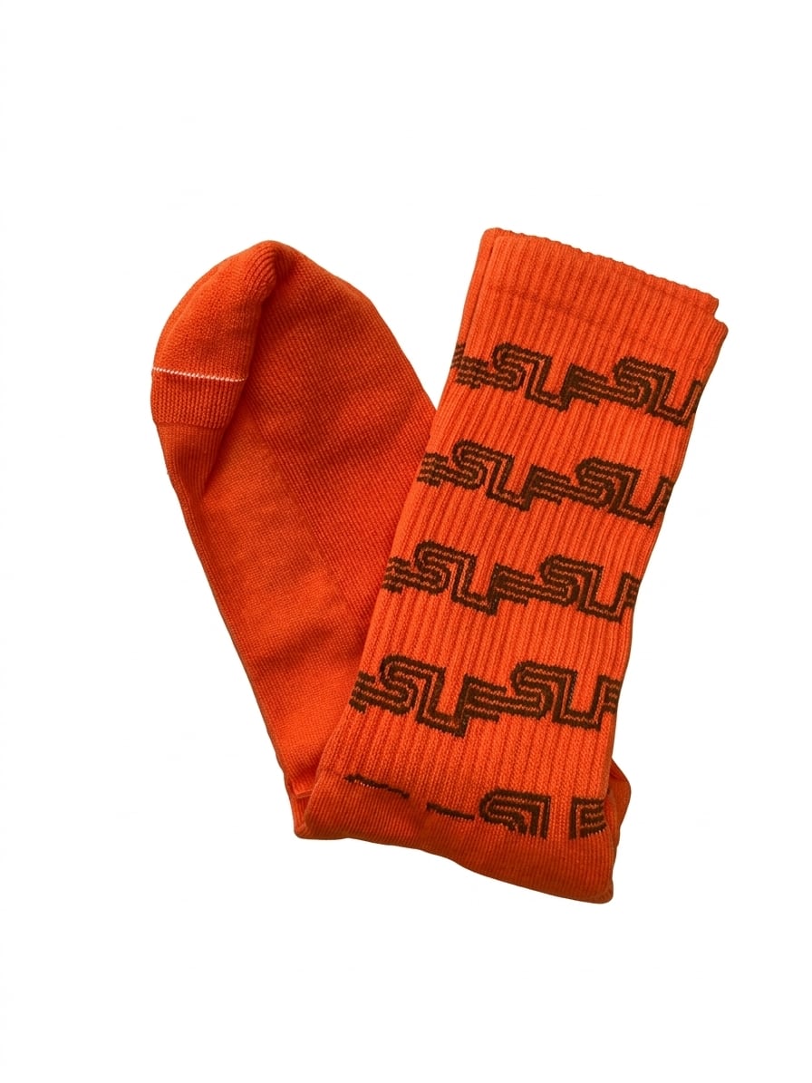SLF line logoがらせん状に織り込まれたソックスです。