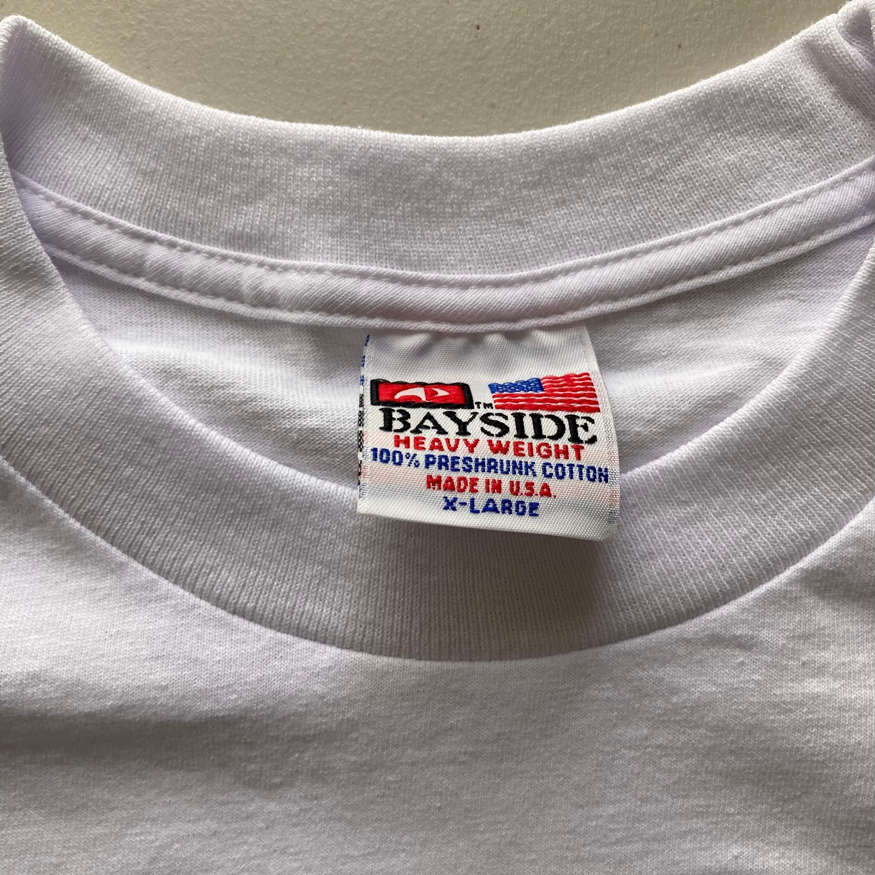 こちらはB品ボディを活用して製作。良品として扱えない理由はまちまちですが縫製、穴あき、日焼けなど。廃棄するのにはもったいないと思い 有効活用しました。もちろん未着用。とても状態の良い古着のイメージで受け入れて頂ければ幸いです。サイズはXLのみです。